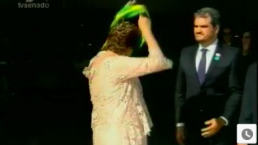O thumbnail, aquela fotografia congelada que serve para identificar o vídeo, mostra Dilma Rousseff retirando a faixa presidencial. É um novidade interessante nesse momento da história do Brasil. Veja abaixo: