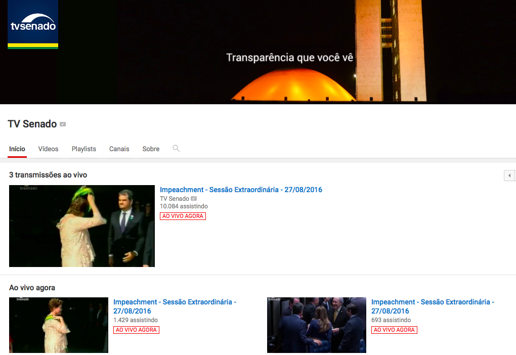 Um dia depois de Renan Calheiros confessar, em rede nacional, tráfico de influência e chamar a casa que preside de “hospício”, o canal da TV Senado no YouTube apareceu com uma imagem estranha.