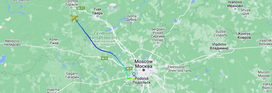 Rota da aeronave de Putin aponta para São Petersburgo. Foto: Flightradar24h