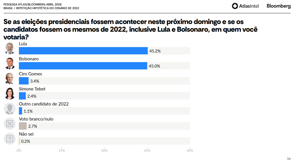 O dado é relevante porque sugere estabilidade da base eleitoral do presidente, mesmo após mais de três anos de governo, e indica capacidade de retenção de votos em um eventual confronto direto.
