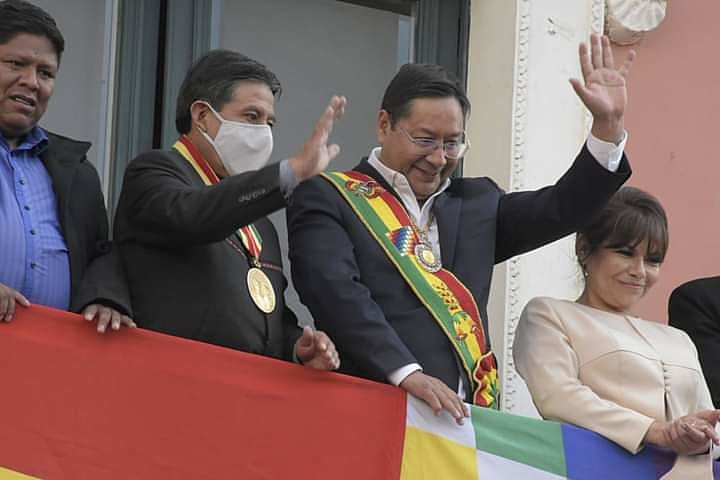 Nesta terça-feira (10), Luis Arce, que assumiu a presidência da Bolívia no último domingo (8), participou do primeiro evento festivo nacional como o novo dirigente do país, acompanhando a celebração de 213 anos da libertação do estado de Potosí. Na ocasião, assegurou que retomará as obras paralisadas há quase um ano pela gestão interina. Em todas as atividades, Arce usou novamente a faixa presidencial com a bandeira boliviana e a Whipala, que representa a congregação dos povos indígenas do Estado Plurinacional.