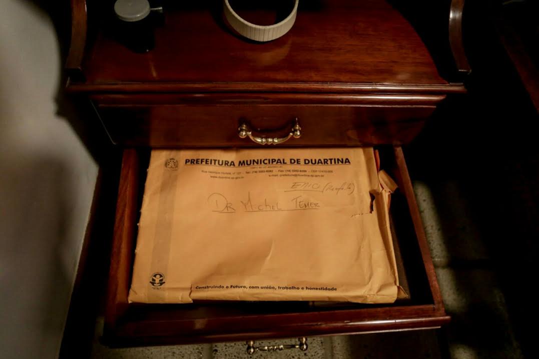 “Este foi um QG do golpe”, afirmou o movimento dos trabalhadores em nota. Entre as curiosidades encontradas, havia um envelope com o nome de Michel e material de campanha.