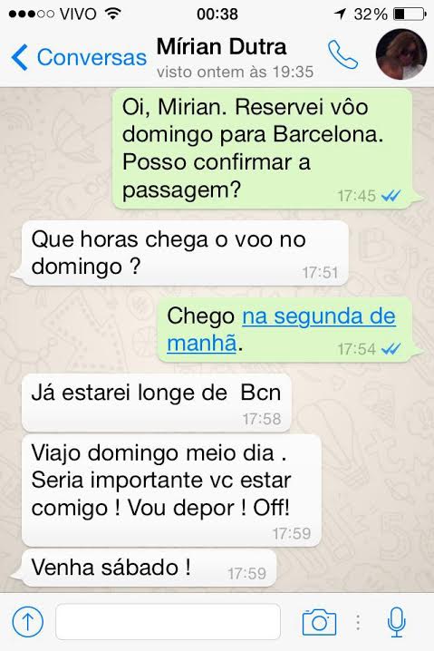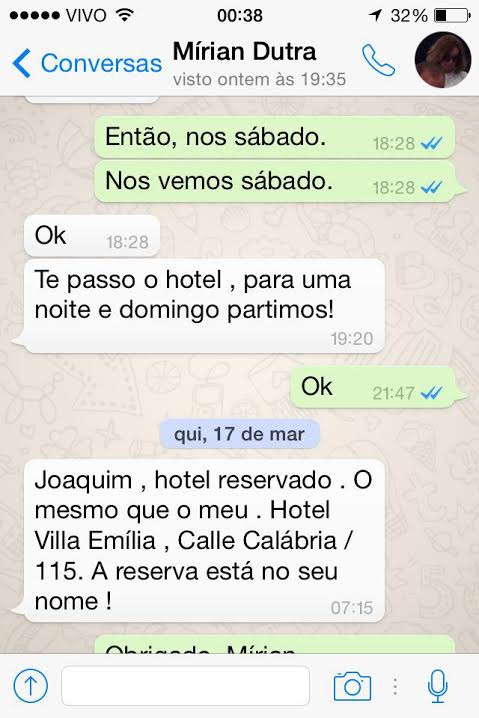 Mirian fez também a reserva do hotel, como mostra nossa conversa pelo celular.