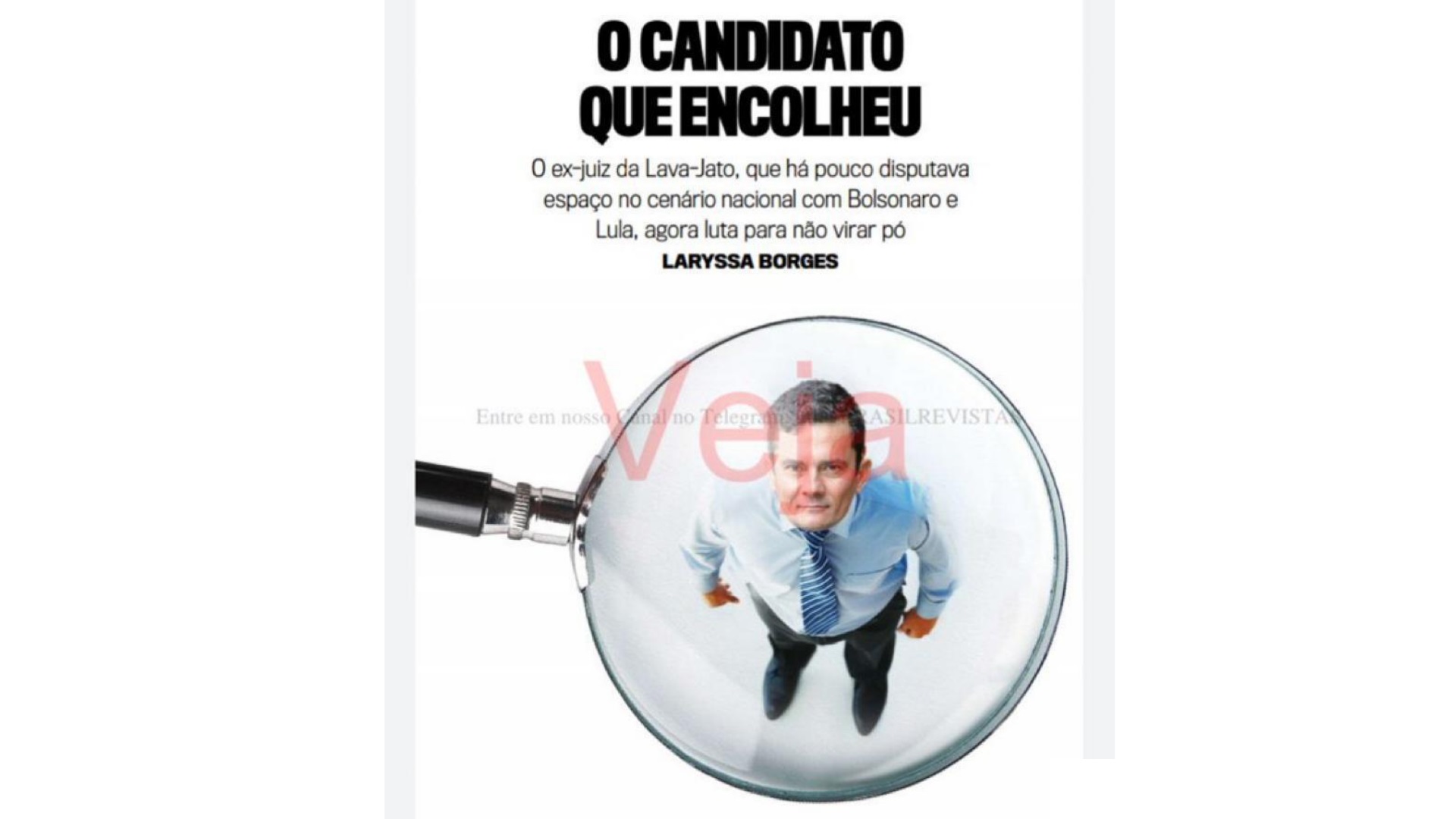 Até a revista Veja, um dos veículos que mais haviam investido na candidatura de Sergio Moro (União Brasil) para a Presidência da República, rifou o ex-juiz da Lava Jato. A nova edição da publicação, que será divulgada no dia 18 de maio, traz uma matéria da jornalista Laryssa Borges dizendo que Moro “encolheu” e “luta para não virar pó”.