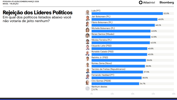 Além disso, os próprios números indicam que a rejeição também pesa dos dois lados. Na pesquisa, 52% dizem não votar em Lula e 46,1% rejeitam Flávio, mostrando que o segundo turno tende a ser decidido por margens estreitas e por eleitores menos ideológicos.