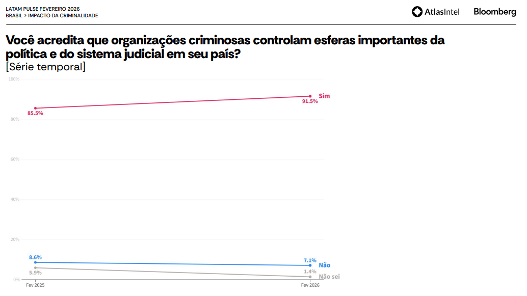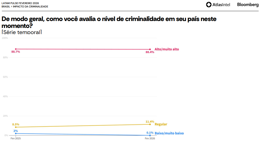 Os dados refletem a percepção generalizada de que a violência segue como uma das principais preocupações da população, independentemente da melhora pontual na avaliação do governo.