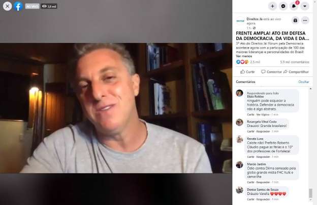 Ato virtual de “frente ampla” tem FHC defendendo “união”, Huck se elogiando e pouca gente vendo