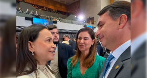VÍDEO – Flávio Bolsonaro bajula María Corina em posse de Kast no Chile: “Grande inspiração”