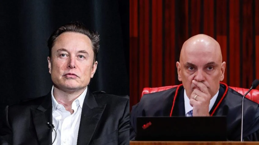 O bilionário Elon Musk, dono do X, e o ministro Alexandre de Moraes, do Supremo Tribunal Federal (STF). Foto: Reprodução
