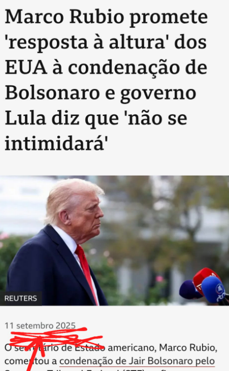 A reportagem mencionava também a reação do governo Lula, que afirmou “não se intimidar” diante das declarações de Rubio.