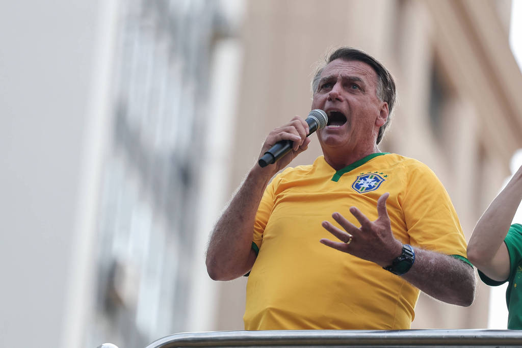 O ex-presidente Jair Bolsonaro em ato pró-anistia na Avenida Paulista. Foto: Danilo Verpa/Folhapress