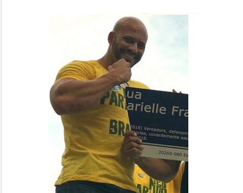 Ele carregava uma “placa de rua” com o nome do bolsonarista Daniel Silveira, que quebrou placa com o nome de Marielle Franco durante as eleições presidenciais de 2018.