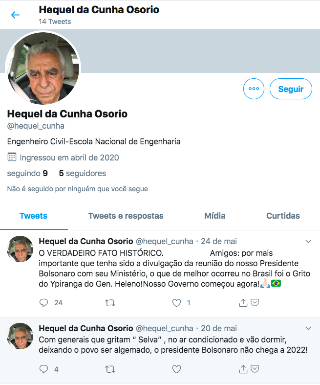 Osório “faz parte de um grupo bolsonarista que se reúne toda tarde/noite na Padaria Rio-Lisboa, com vários ex-militares, e tem um blog de fake news de apoio ao Bolsonaro”.
