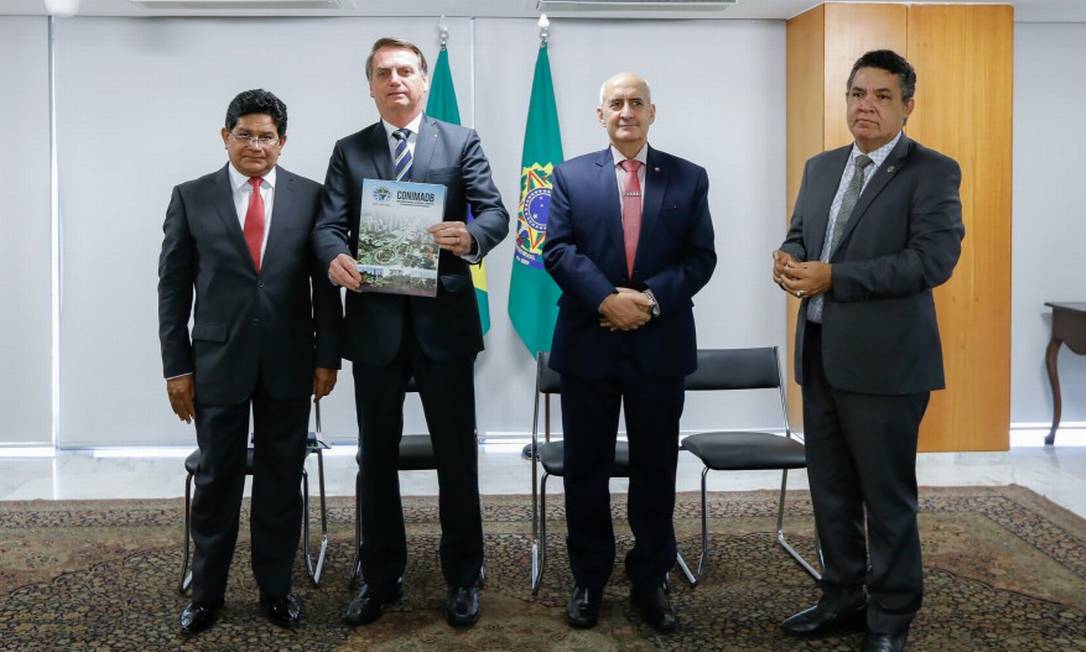 O presidente Jair Bolsonaro com os pastores Gilmar Santos e Arilton Moura