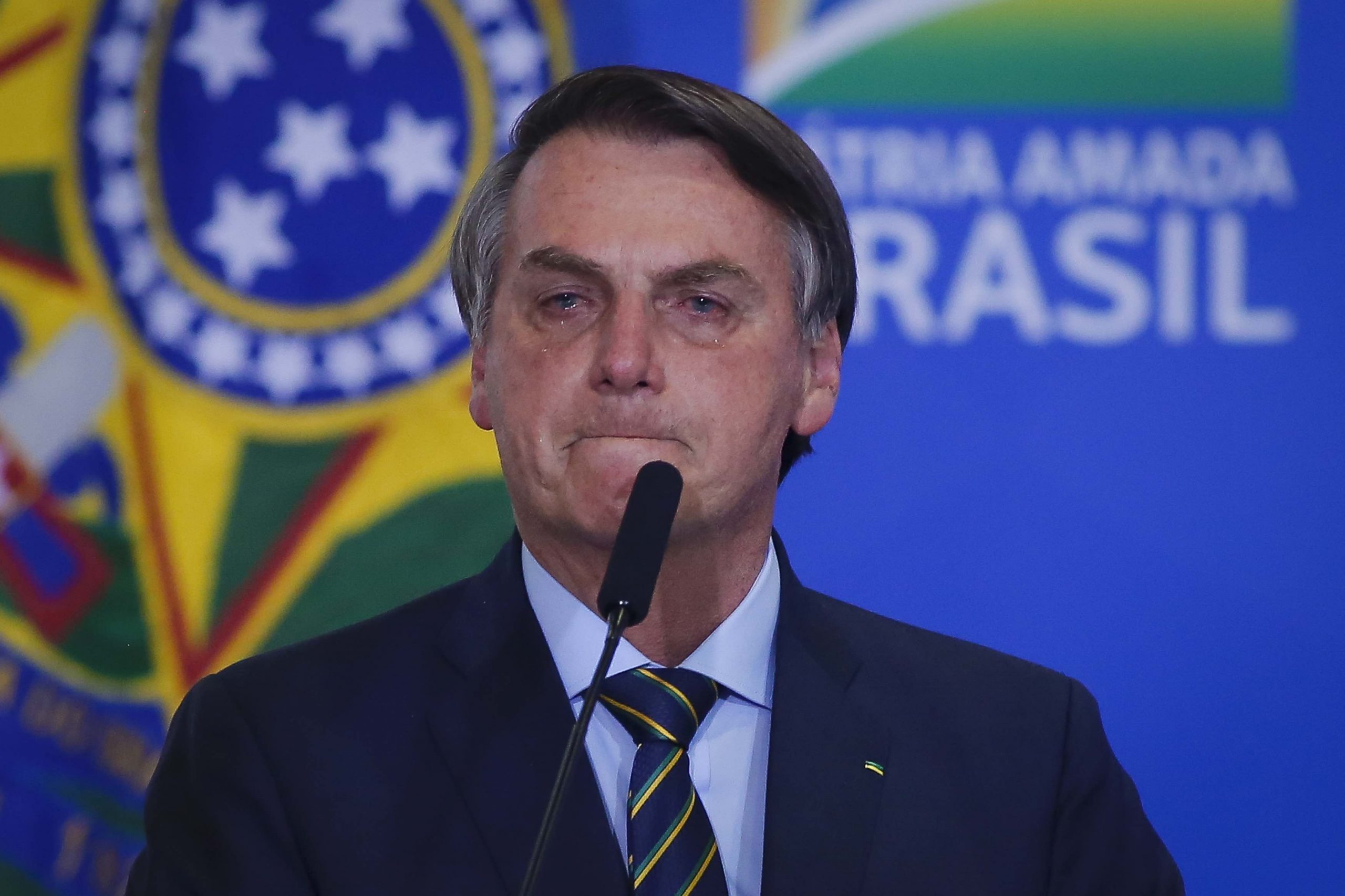 Presidente Jair Bolsonaro chora durante Culto de Ações de Graça, no Palacio do Planalto. | Sérgio Lima/Poder360 17,dez.2019|