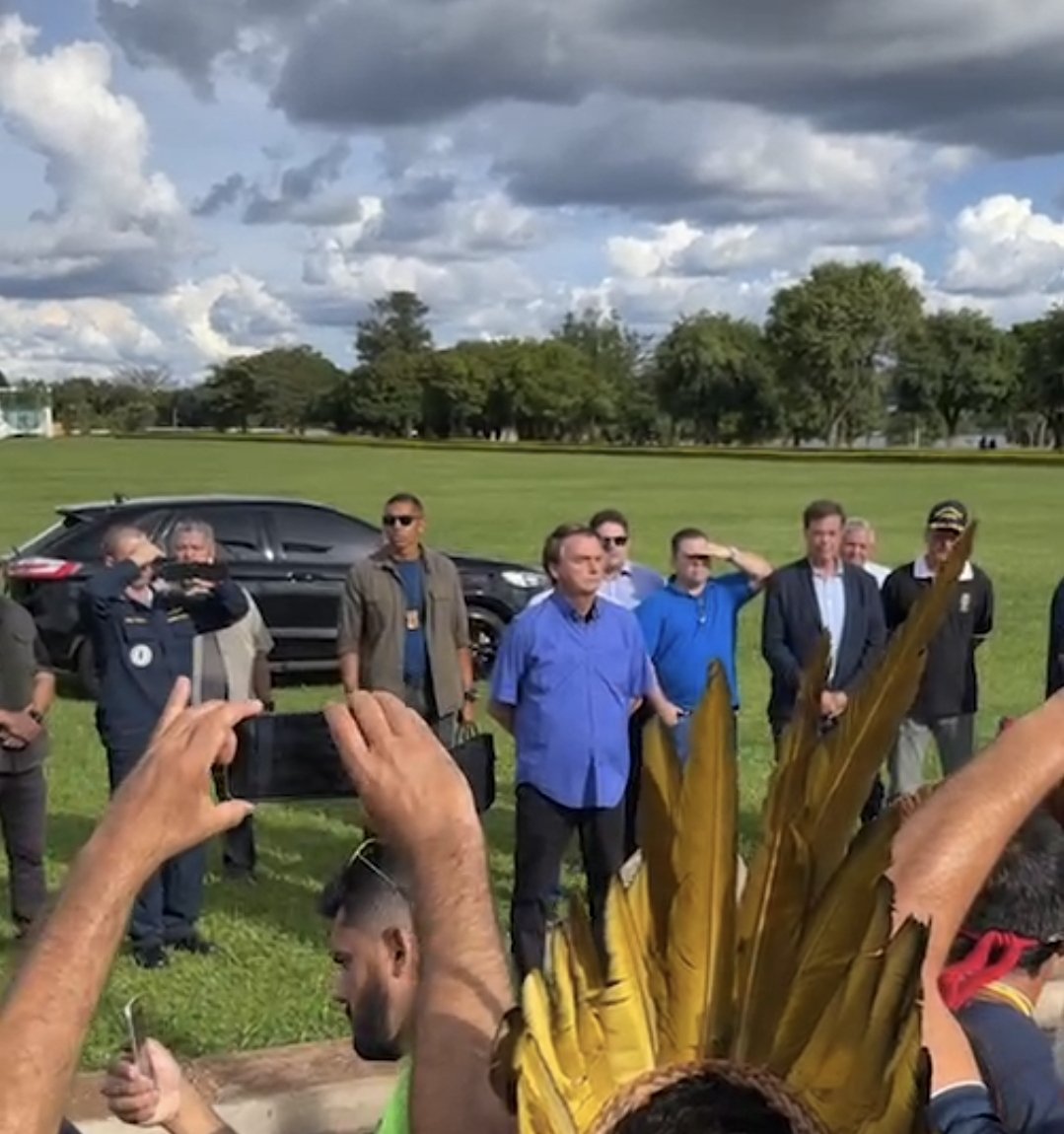 Jair Bolsonaro saiu no jardim do Palácio do Planalto e fez discurso para os golpistas que ficam de plantão em frente ao quartel general do Exército em Brasília.