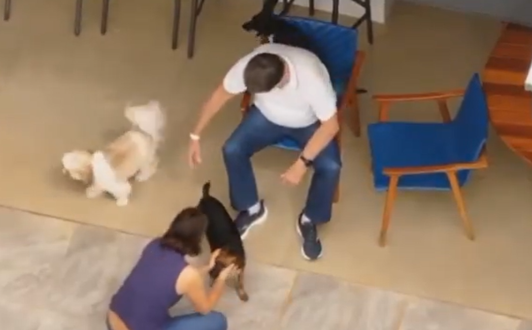 Bolsonaro tentando brincar com cachorros. Foto: reprodução