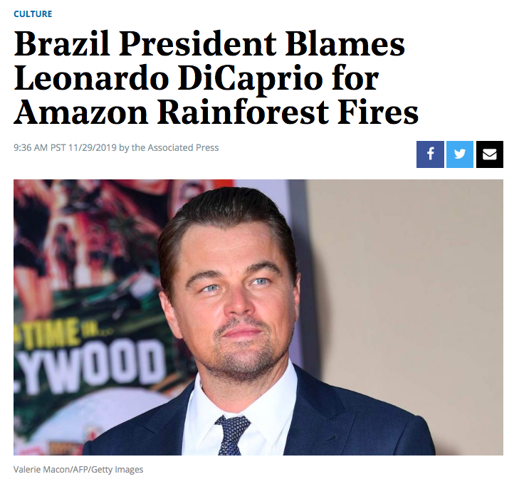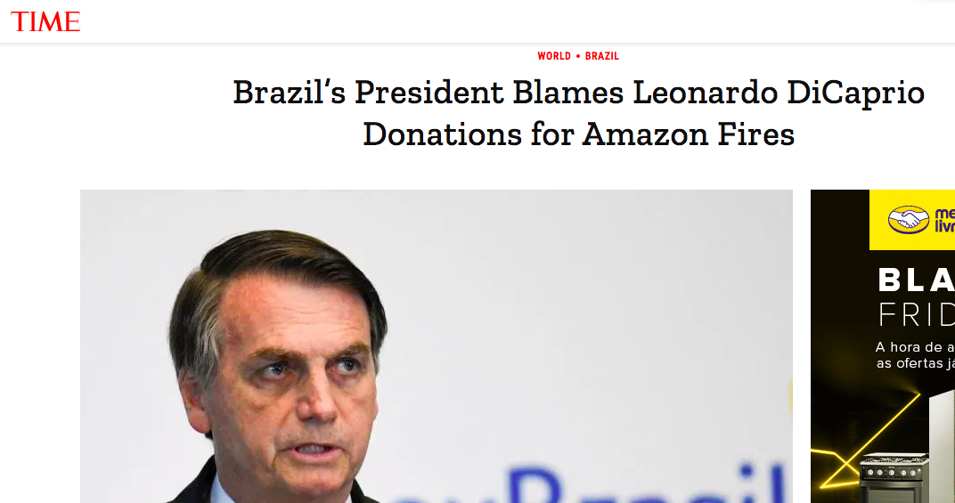 Bolsonaro vira piada na mídia internacional após acusar DiCaprio de “tacar fogo na Amazônia”