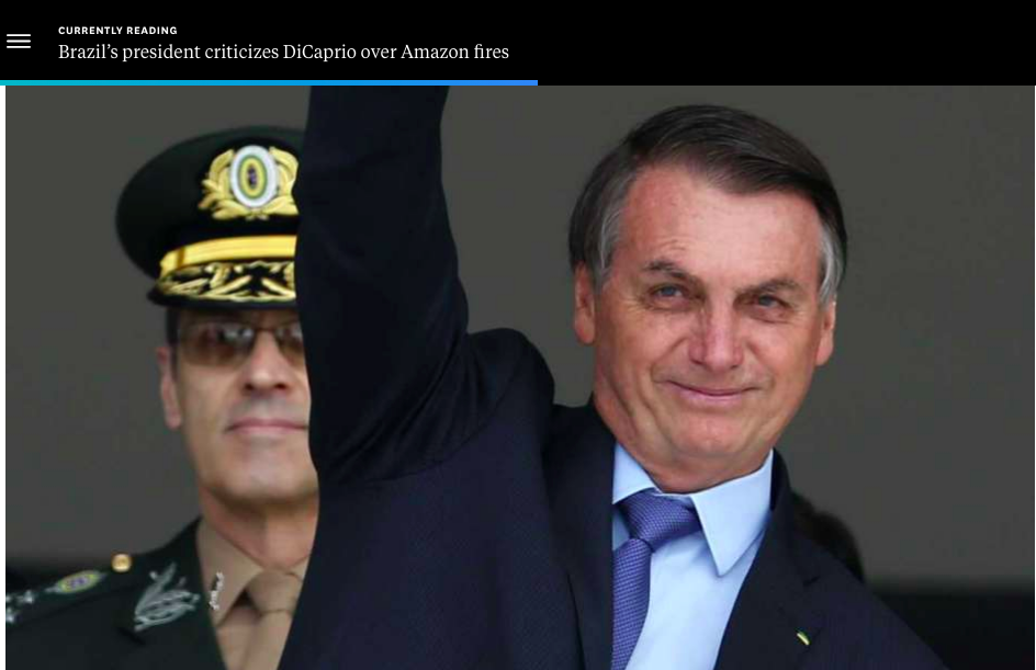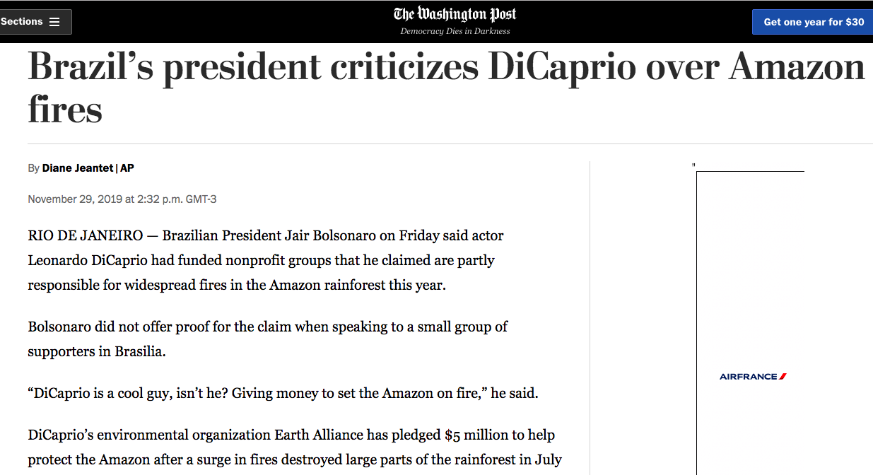 Bolsonaro no Washington Post após acusar DiCaprio de destruir a Amazônia