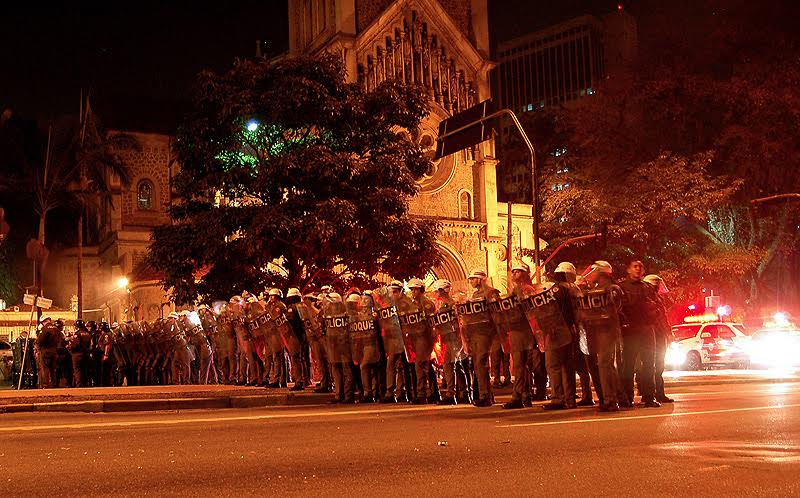 Daí os olhos queimam, a garganta fecha, o oxigênio acaba. A ação violenta e repressora provoca a reação dos mais novos e mais exaltados. Agências bancárias tornam-se alvo preferido. O centro da cidade virou praça de guerra. Uma quebra na ordem, mas estamos vivenciando um golpe, qual é a ordem estabelecida num país que retira um presidente na mão grande?