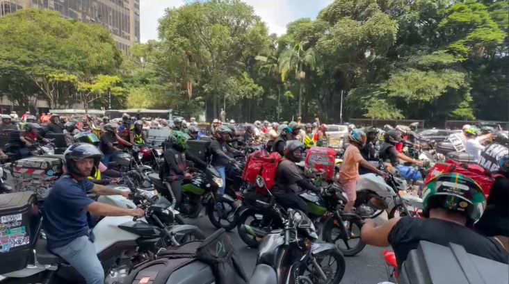 Em São Paulo, a mobilização começou no Pacaembu, com os entregadores seguindo em carreata até a Avenida Paulista.