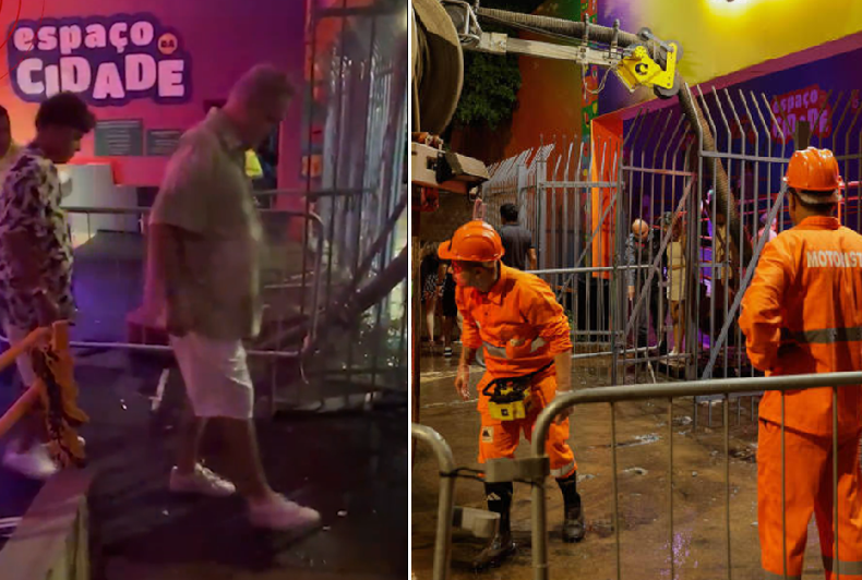 Na madrugada deste sábado (14), a entrada do camarote Espaço da Cidade, mantido pela Prefeitura de São Paulo, foi alagada após o rompimento de um cano de esgoto no Sambódromo do Anhembi, na zona norte da capital. O incidente ocorreu durante o Carnaval 2026 e afetou o acesso de convidados ao local.