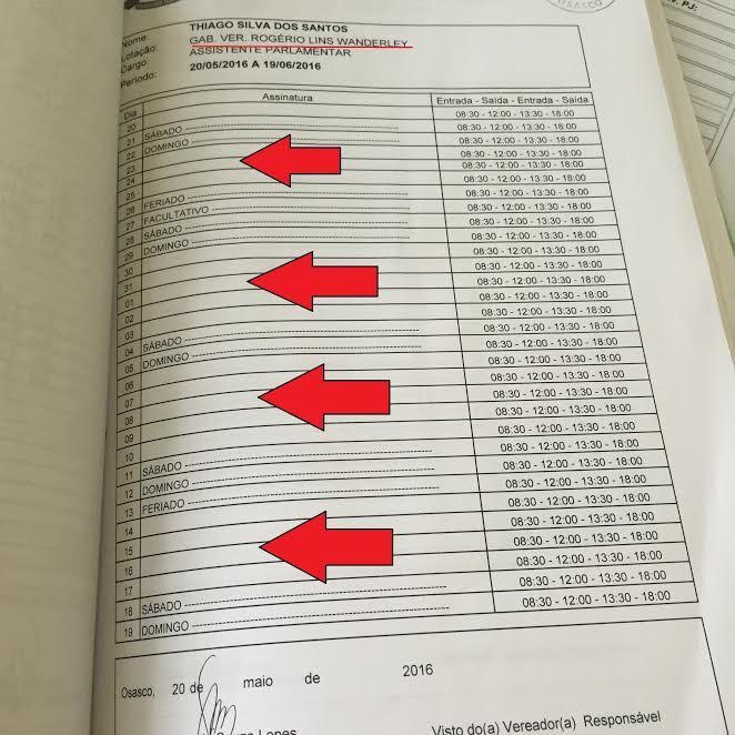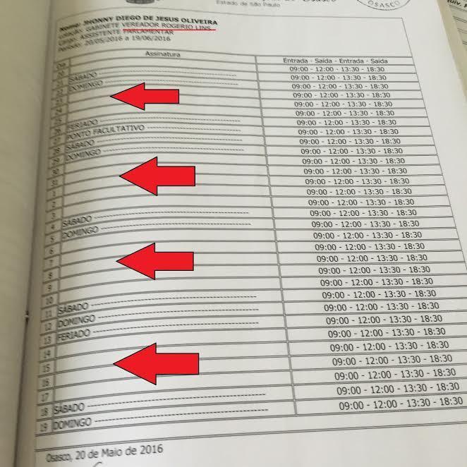 O Ministério Público apreendeu aproximadamente 20 folhas de presença do gabinete do candidato Rogério Lins no dia 9 de junho de 2016. A abertura e o fechamento dos registros dos funcionários públicos da Câmara funcionam do dia 20 do mês corrente até o dia 19 do mês seguinte.
