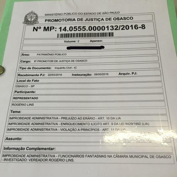 Há quatro meses, o Ministério Público expediu um mandato de busca e apreensão em 10 gabinetes de vereadores em Osasco. Um dos investigados no escândalo foi o próprio Rogério Lins, sob a acusação de manter funcionários fantasmas em sua gestão.