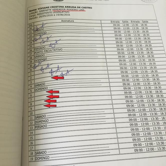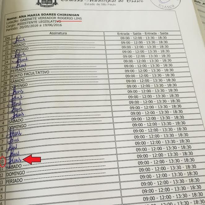 O Ministério Público apreendeu aproximadamente 20 folhas de presença do gabinete do candidato Rogério Lins no dia 9 de junho de 2016. A abertura e o fechamento dos registros dos funcionários públicos da Câmara funcionam do dia 20 do mês corrente até o dia 19 do mês seguinte.