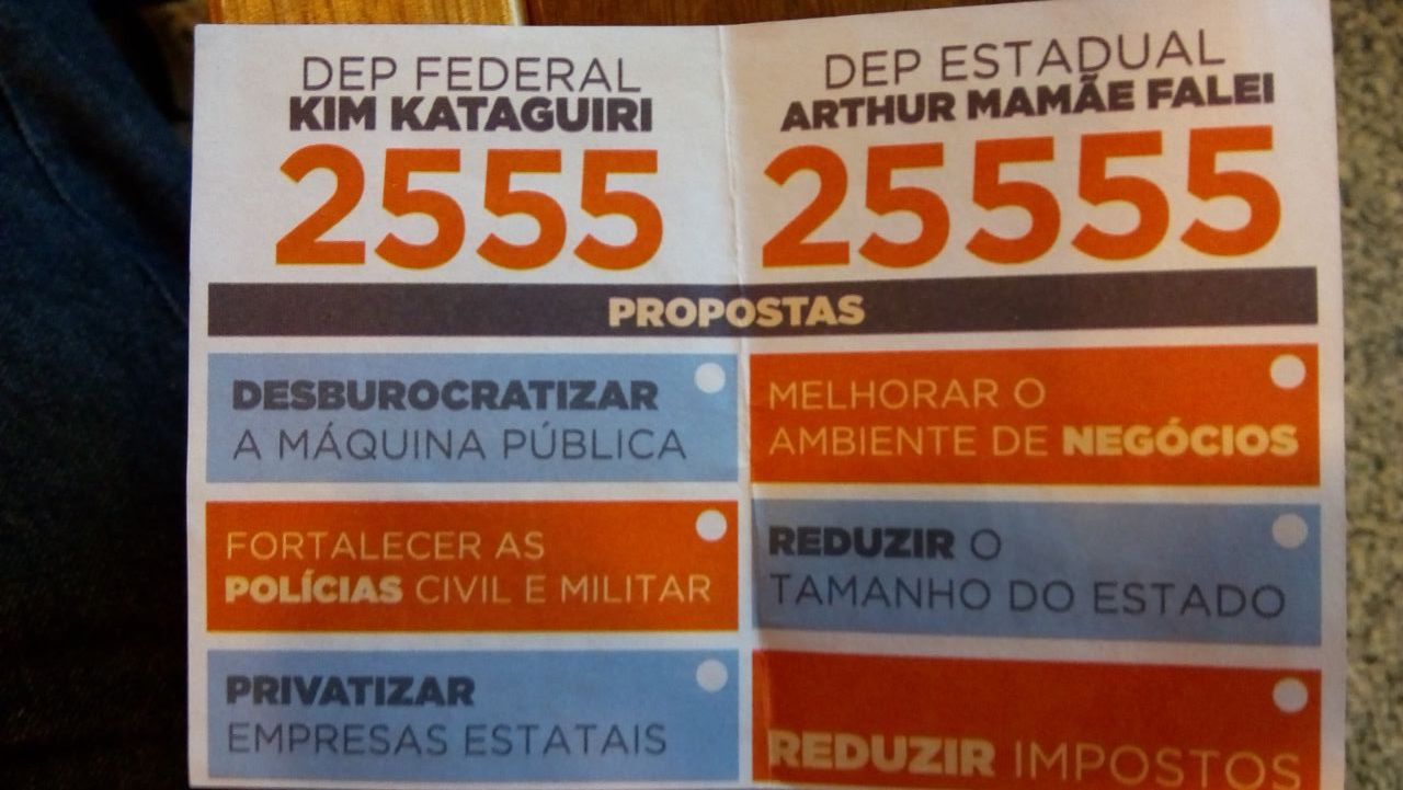 Ligados ao empresário Flávio Rocha, do PRB, Kim Kataguiri e Arthur Mamãe Falei (DEM), que concorrem aos cargos de deputado federal e estadual, respectivamente, também não exibem o nome de Geraldo em suas peças de publicidade – aliás, neste caso nem a de João Dória.