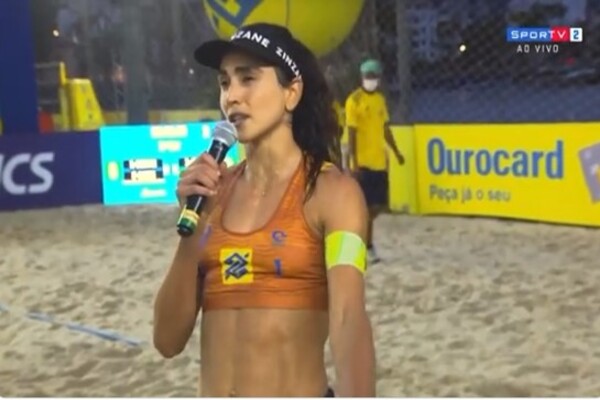 Competindo pelo Open de duplas do Circuito Brasileiro de Vôlei de Praia, no Rio de Janeiro, a atleta prestou solidariedade aos familiares das vítimas da covid-19.