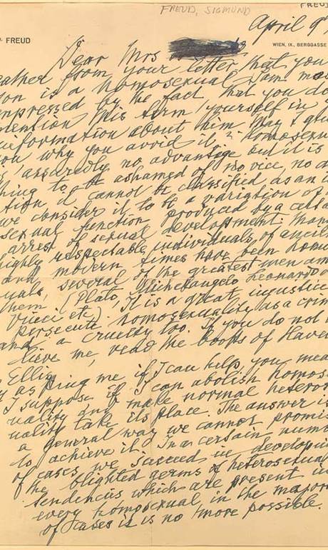 Em 1935, Sigmund Freud respondeu a uma mãe preocupada com o filho. Em carta, Freud registra que não acreditava que a homossexualidade fosse uma doença.