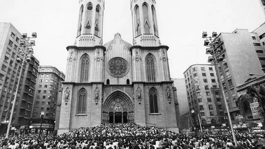 Manifestação na praça da Sé após missa de sétimo dia da morte Herzog, em 31 de outubro de 1975. Foto: Agência Estado