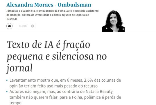 Ombudsman da Folha admite que outros ‘autores’ usam IA mas ‘não querem falar’