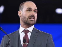 Em ato extremista nos EUA, Eduardo prevê Flávio eleito, Bolsonaro anistiado e Moraes...