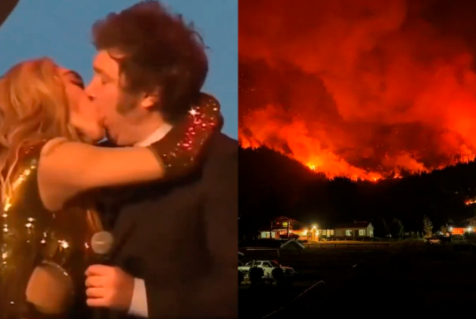 Milei canta com a ex em show patético enquanto incêndios devastam a Patagônia