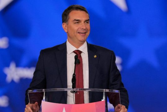 Nos EUA, o golpista Flávio Bolsonaro insiste em mostrar à mídia que nunca foi ‘moderado’, mas não adianta