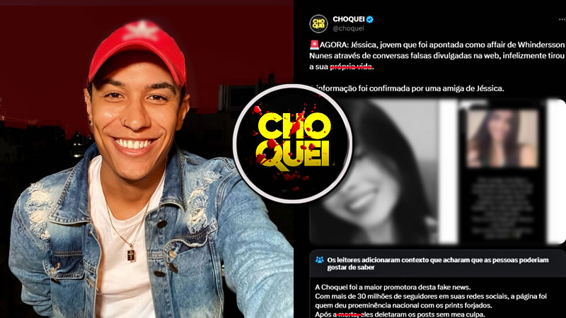O perfil Choquei divulgou um comunicado oficial na tarde deste sábado (23) após ser acusado de provocar a morte de Jessica Vitória Canedo, de 22 anos. A jovem foi apontada pela página como o novo affair do humorista Whindersson Nunes.