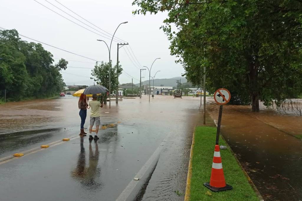 No sul de Santa Catarina, um homem de 70 anos está desaparecido desde sábado (18) em Praia Grande. Segundo o Corpo de Bombeiros Militar, a casa do idoso teria sido arrastada e destruída pela cheia do rio.