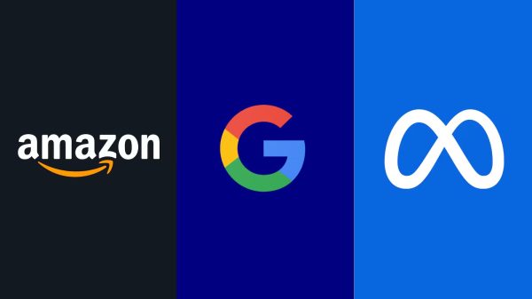 Logos da Amazon, Google e Meta. Foto: Reprodução