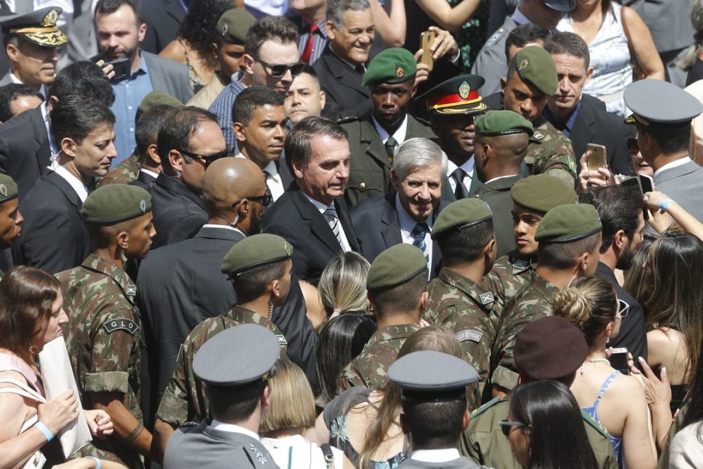 Jair Bolsonaro no meio de militares.