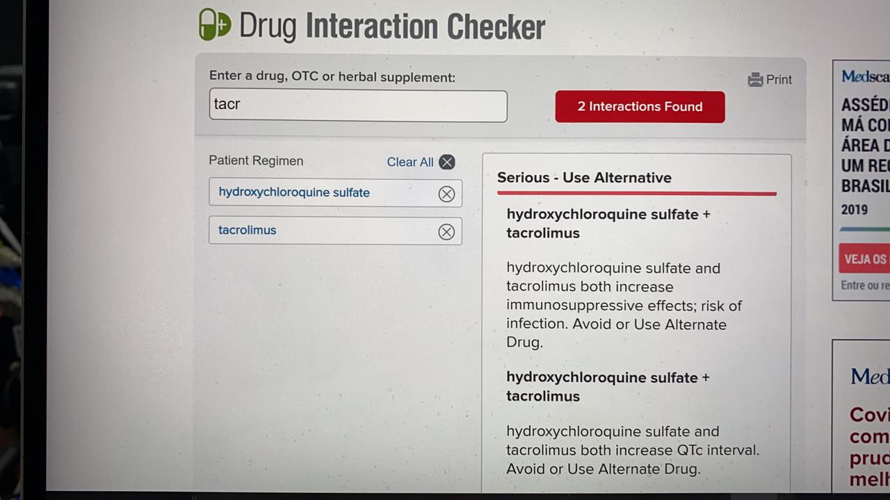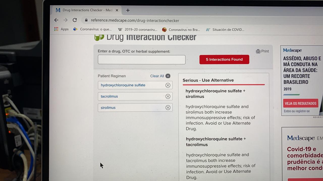 No site Drug Interaction Checker, essas interações são todas desaconselhadas. “Evite ou use um medicamento alternativo”, diz o alerta (veja abaixo).