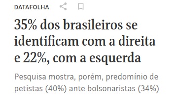 “Datafolha: 35% dos brasileiros se identificam com direita e 22%, com esquerda, aponta pesquisa”