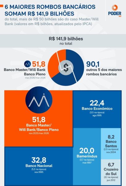 O Banco Master, fundado por Daniel Vorcaro, foi responsável pelo maior rombo bancário da história do Brasil, com R$ 51,8 bilhões. Esse valor inclui também a liquidação de outras instituições financeiras, como o Will Bank e o Banco Pleno, que somam, juntas, mais de R$ 140 bilhões em prejuízos, com o Banco Master representando mais de 1/3 desse total.