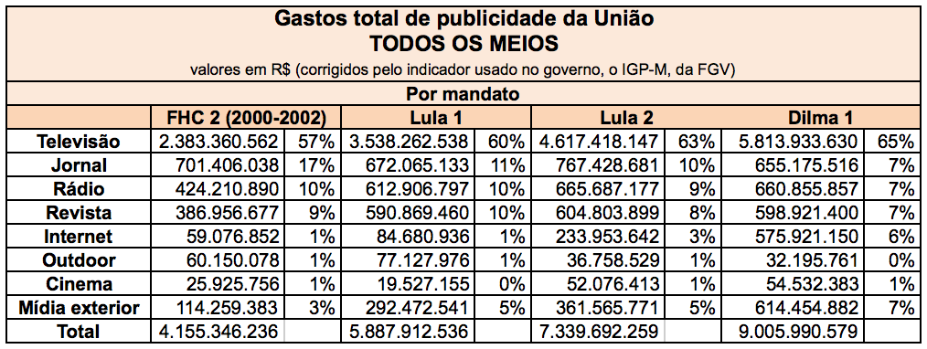 É acachapante quando você pensa em percentuais. Onze milhões de reais representam 0,5% — meio por cento — da verba de publicidade de 2 bilhões de reais da Secom.