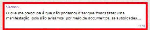 Embora a pauta utilizada para a mobilização fosse um ato pela liberdade de expressão e pela Escola Sem Partido, o discurso predominante foi o da violência e opressão aos chamados comunistas e esquerdistas. Um dos envolvidos menciona que se houvesse violência, desmantelaria o movimento [da esquerda] a ponto de muita gente abandoná-lo “com medo de dar merda”. Justificam constantemente a utilização do aparato repressor como prevenção ao possível ataque que poderiam sofrer, seja ele verbal ou físico. Apesar de afirmarem na mesma frequência que os “adversários políticos” são “frouxos e covardes” e que revidariam as provocações somente com palavras de ordem e cuspes.