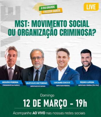 Autor do requerimento da CPI do MST promoveu live com presidente da Farsul. Foto: Reprodução