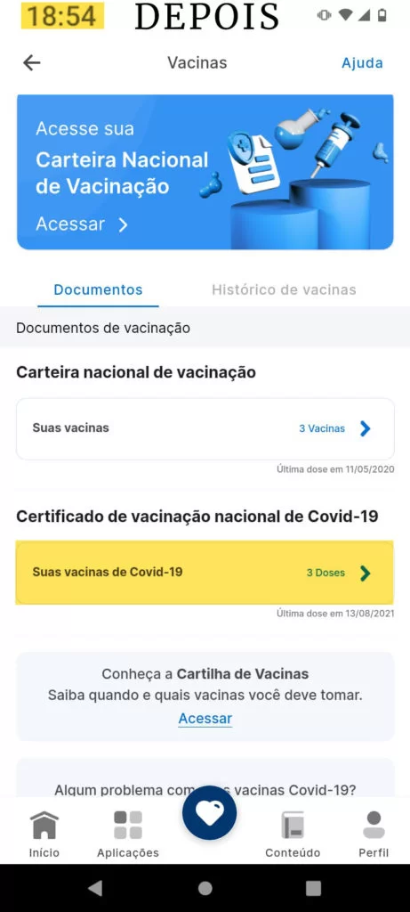 Confira o antes e depois da realização da fraude no aplicativo do ConecteSUS: