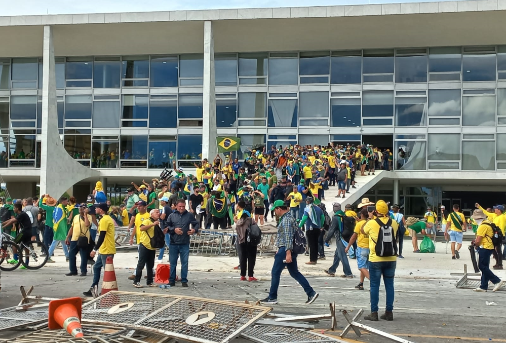 Palácio do Planalto durante os atos de 8 de janeiro. Foto: Reprodução