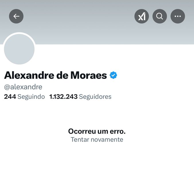 Mensagem que aparece ao acessar a conta de Moraes no X pelo celular